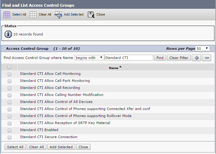 11. A pop-up will open, search for “Begins with ‘Standard CTI'”Choose Role